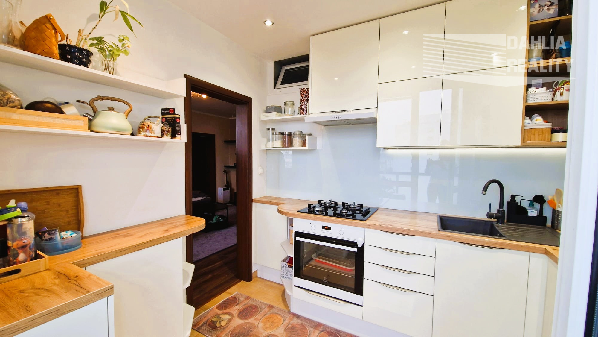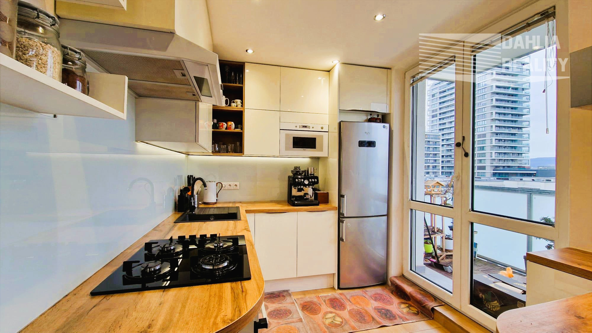 nová kuchynská linka (kompletne urobená v r. 2020 na mieru) je vybavená všetkými spotrebičmi = elektrická rúra, digestor, indukčná platňa, chladnička s mrazničkou, umývačka riadu;