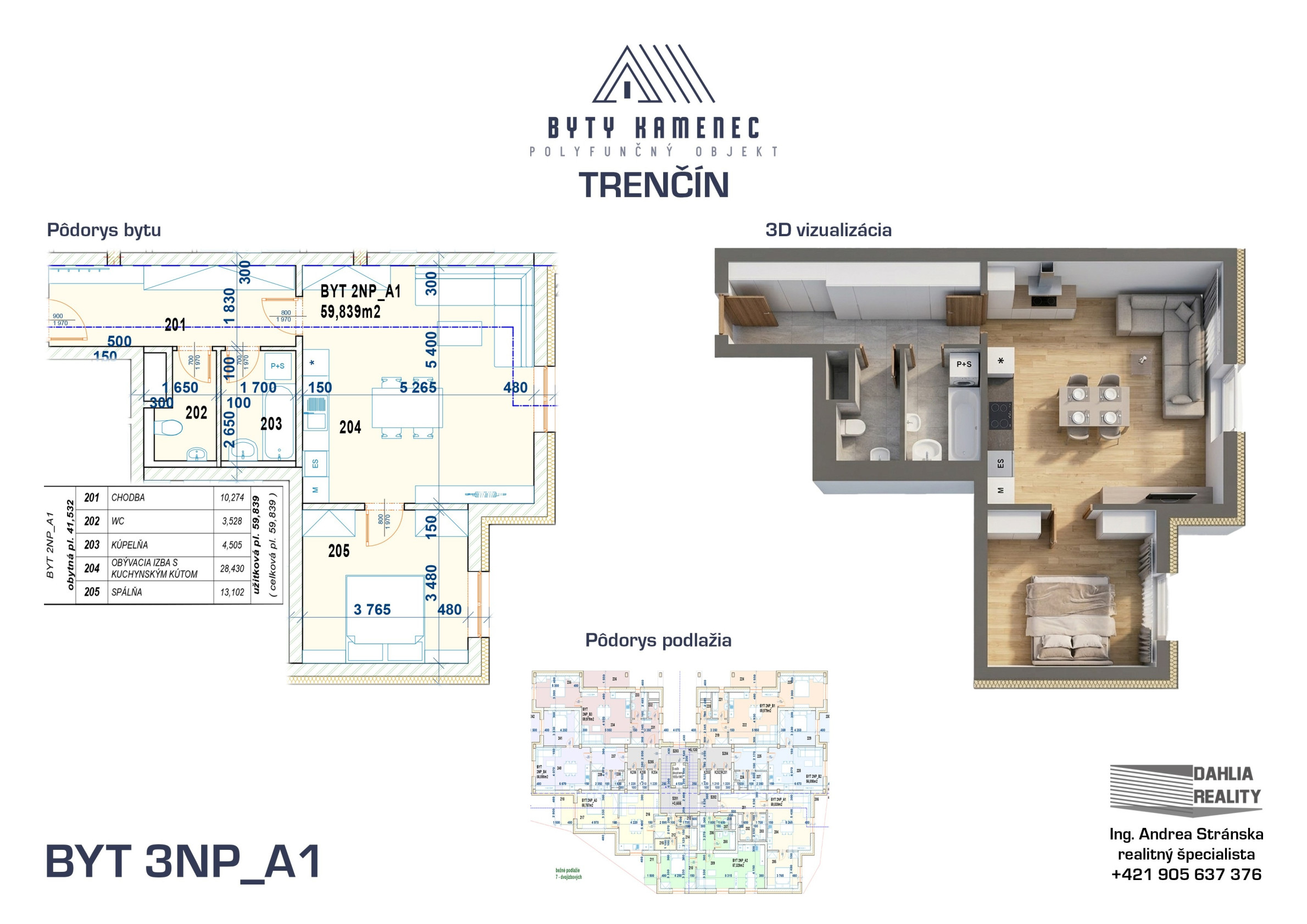 DISPOZÍCIA BYTU marketingové označenie 3NP_A1: