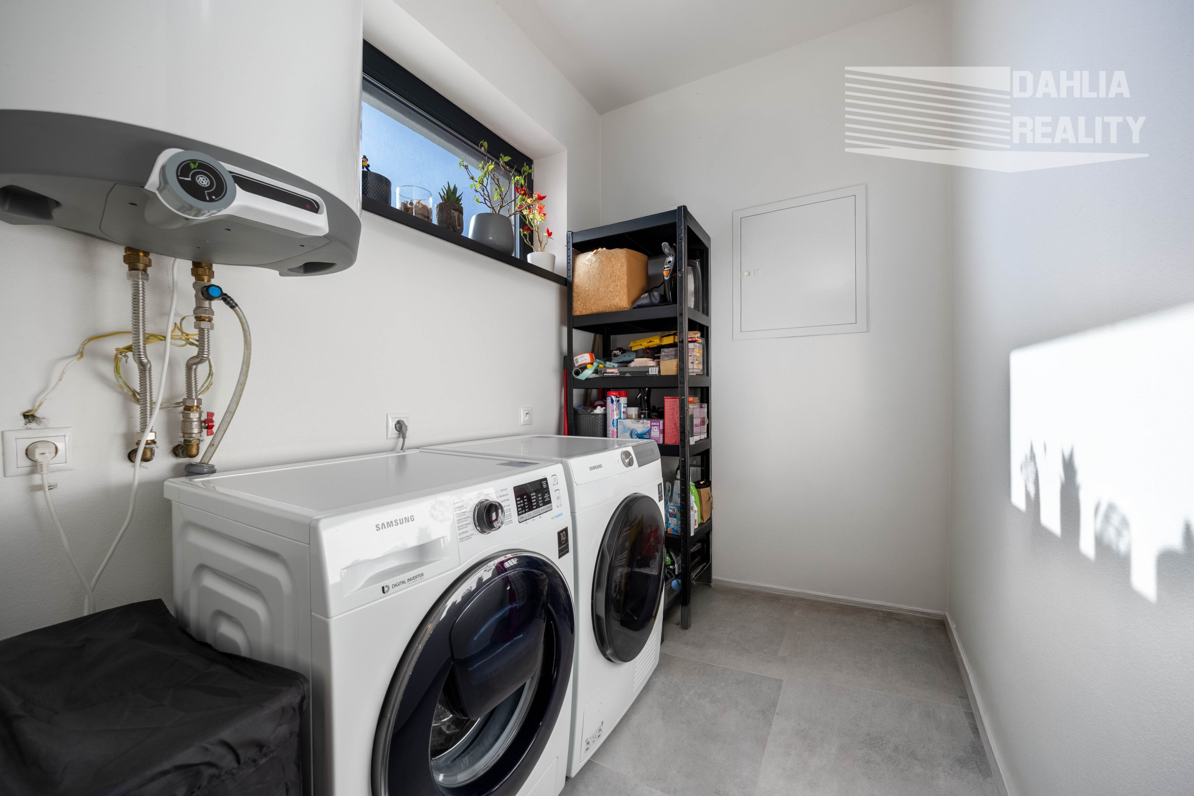 - v dome sa nachádza tzv. technická miestnosť s práčovňou a kotlom,