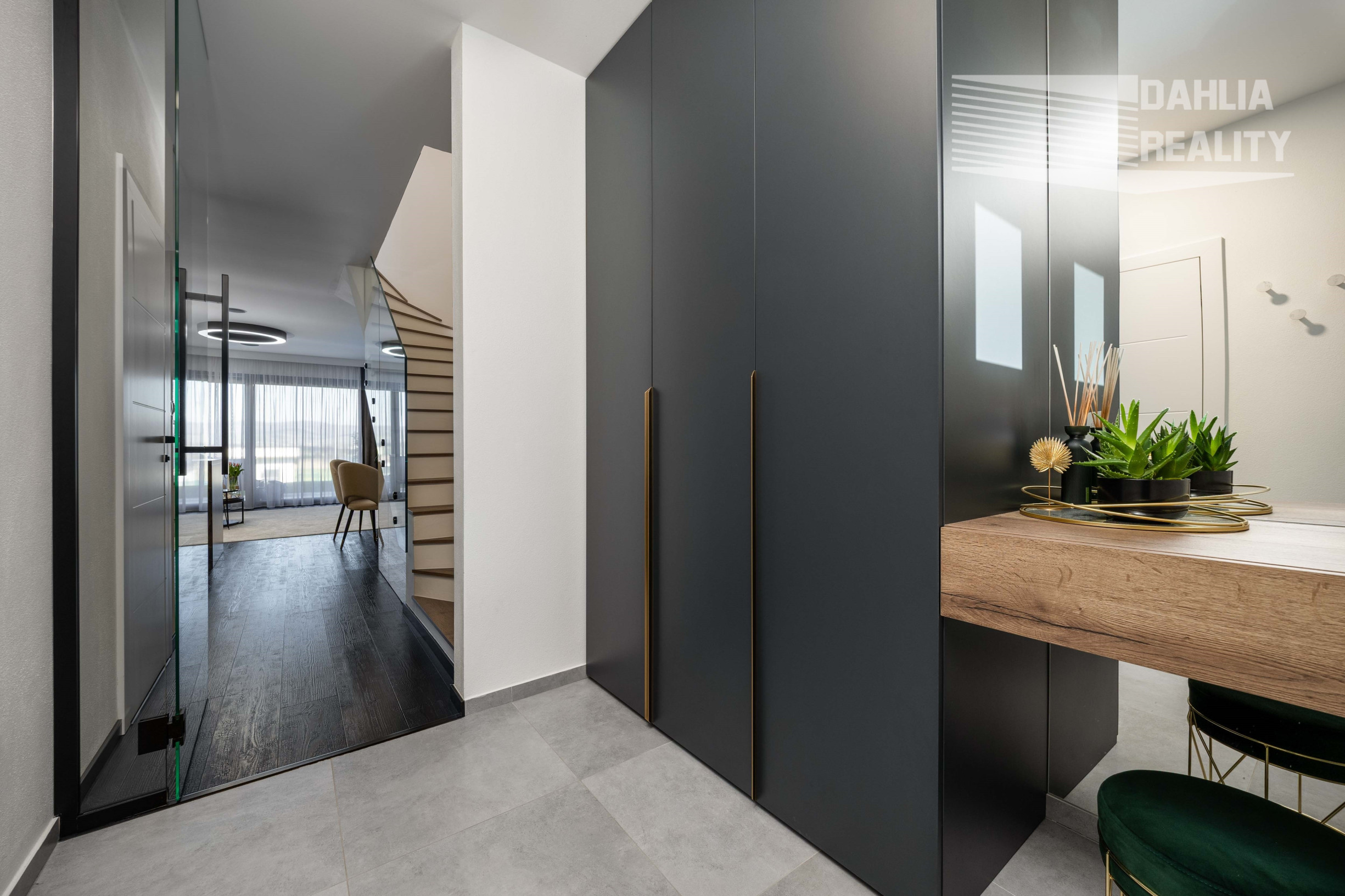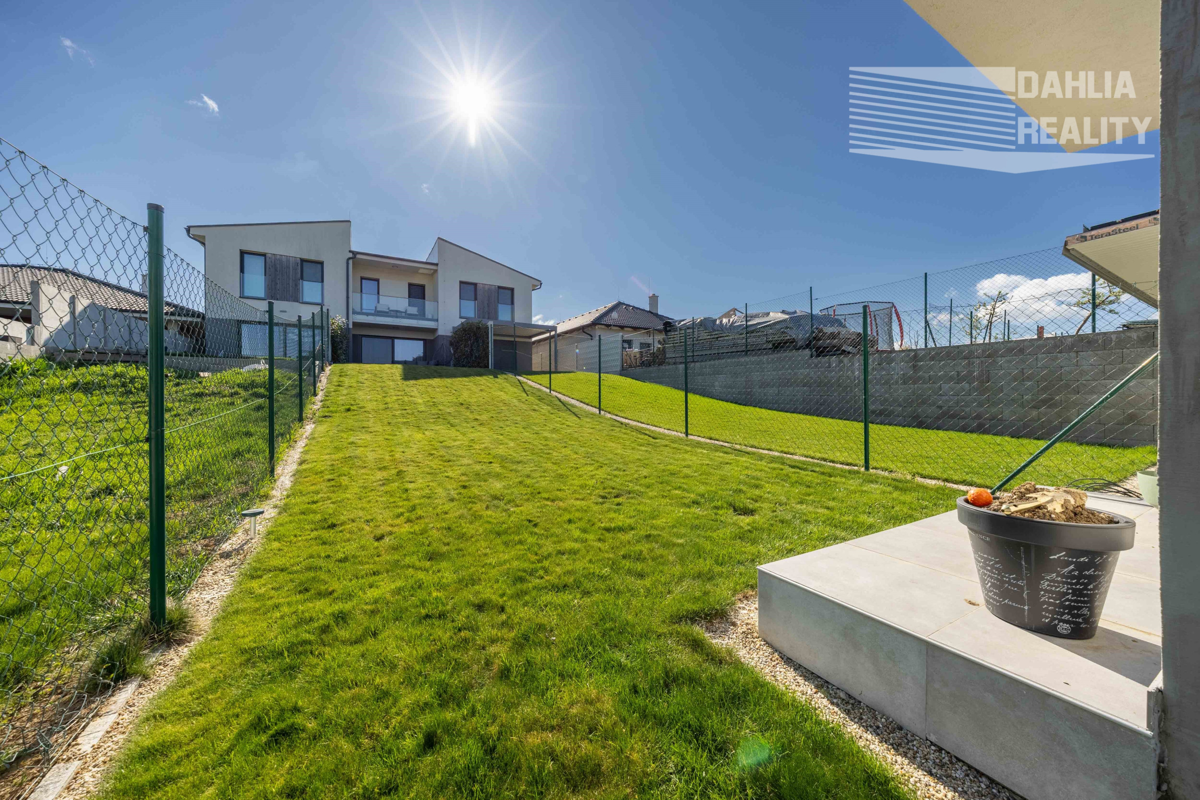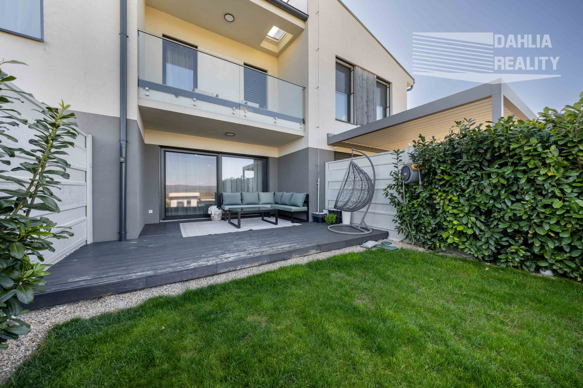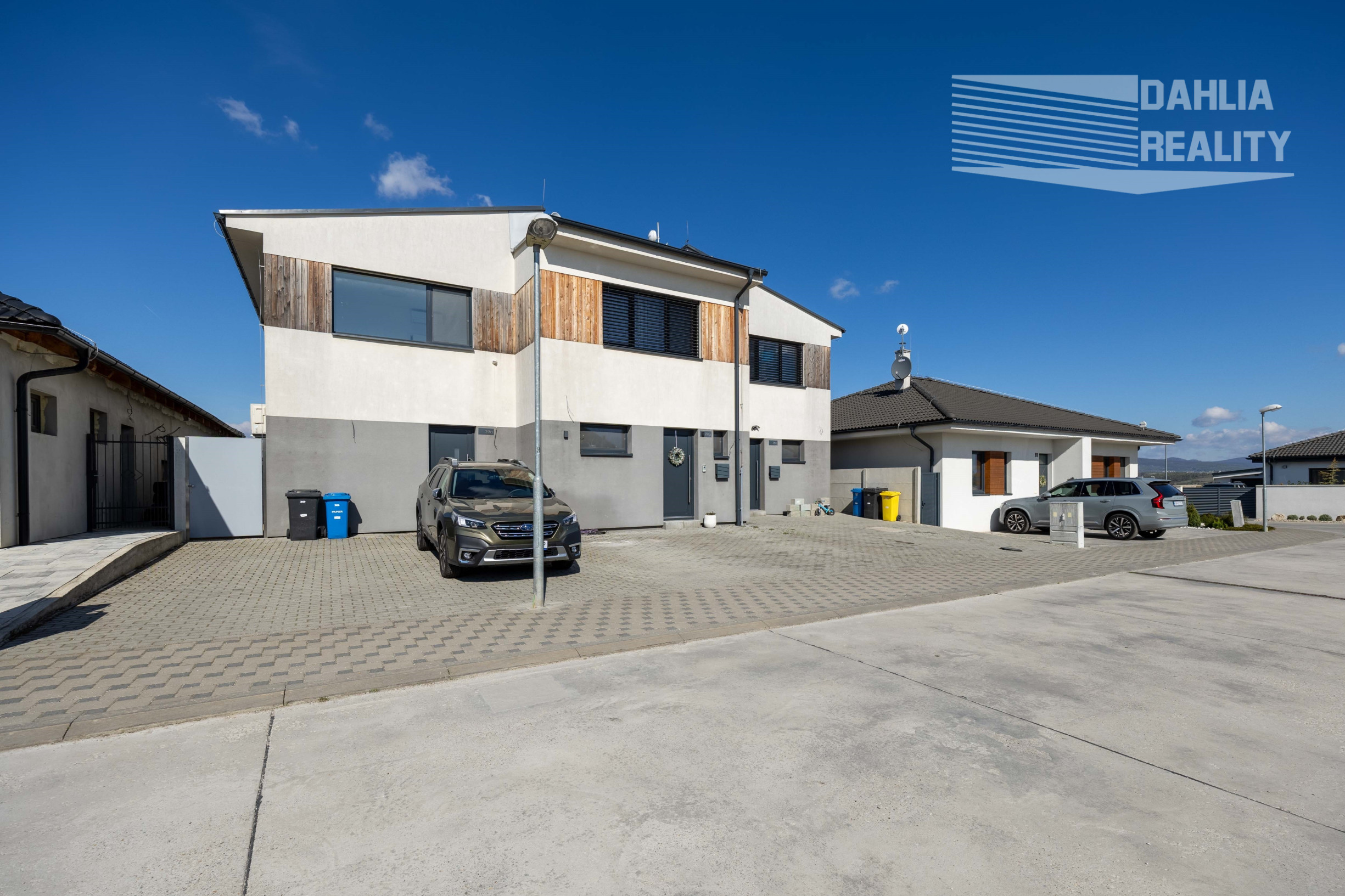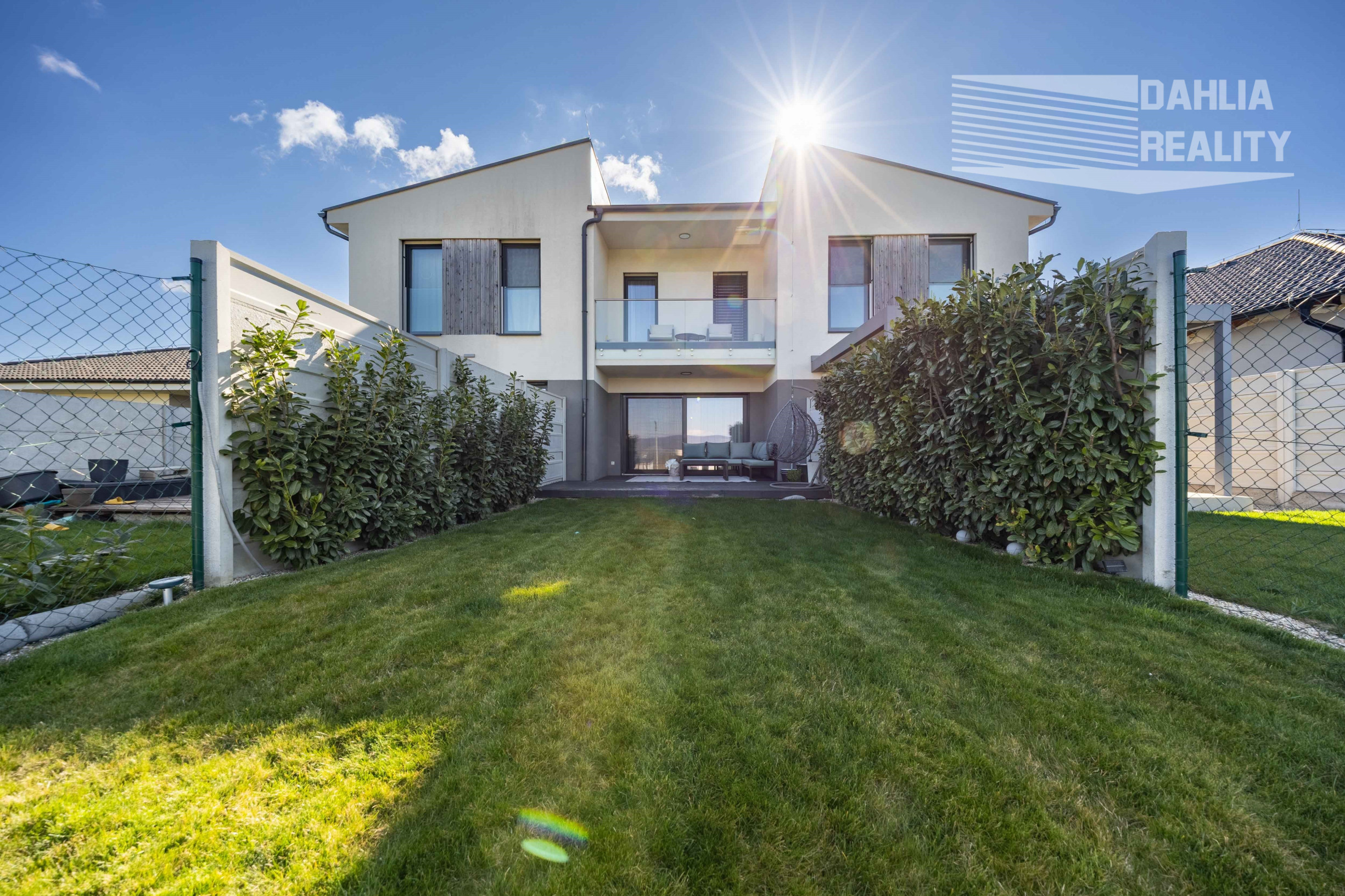 Realitná kancelária DAHLIA REALITY ponúka na predaj v novej lokalite na začiatku obce Šenkvice, Pezinká ul. novostavbu dvojpodlažný 3 izbový rodinný dom so záhradou vo výmere 150 m2 a parkovaním priamo pri vstupe do rodinného domu, ktorý je súčasťou tzv. trojdomu. Ponúkaný dom je výnimočný tým, že je kompletne a nadštandartne zariadený luxusným nábytkom a kvalitnými materiálmi, zároveň výška stropov na poschodí je 2,8 metra čo dáva punc komfortného bývania.
